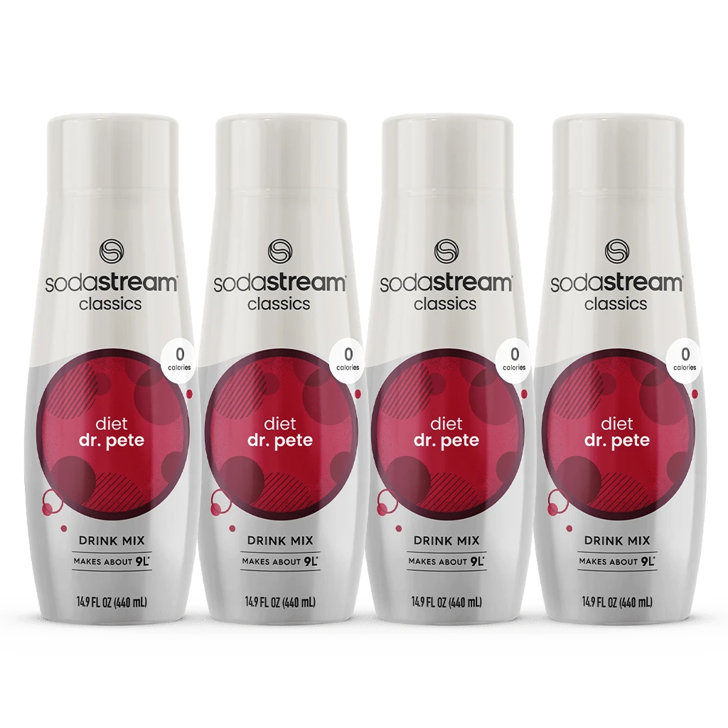 Includes: (4) 14.9 fl.oz SodaStream® Classics Diet Dr Pete Drink Mix