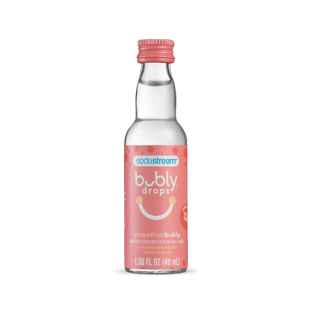 Grapefruitbubly drops – a fun way to sparkle your water with grapefruit flavor essence! Make your favorite bubly ™ sparkling water right at home with SodaStream. no calories. no sweeteners. all smiles.™