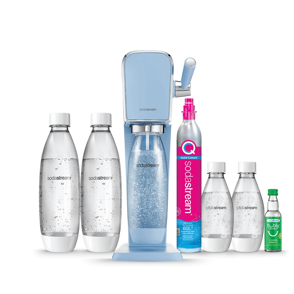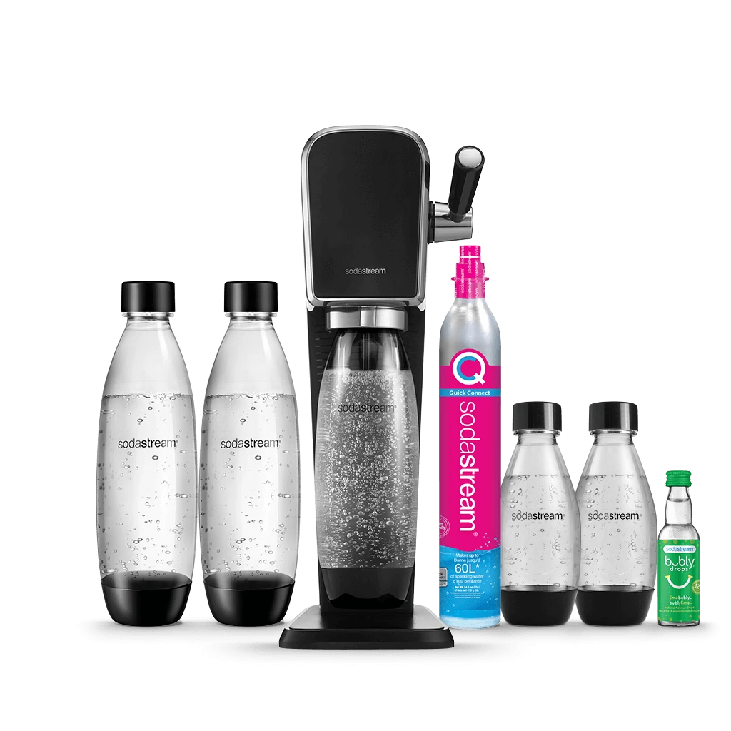 The new SodaStream Art™ sparkling water maker celebrates the art of making your own fresh sparkling beverages at home. With a push of the lever, turn flat water into fresh sparkling water and customize to your liking.