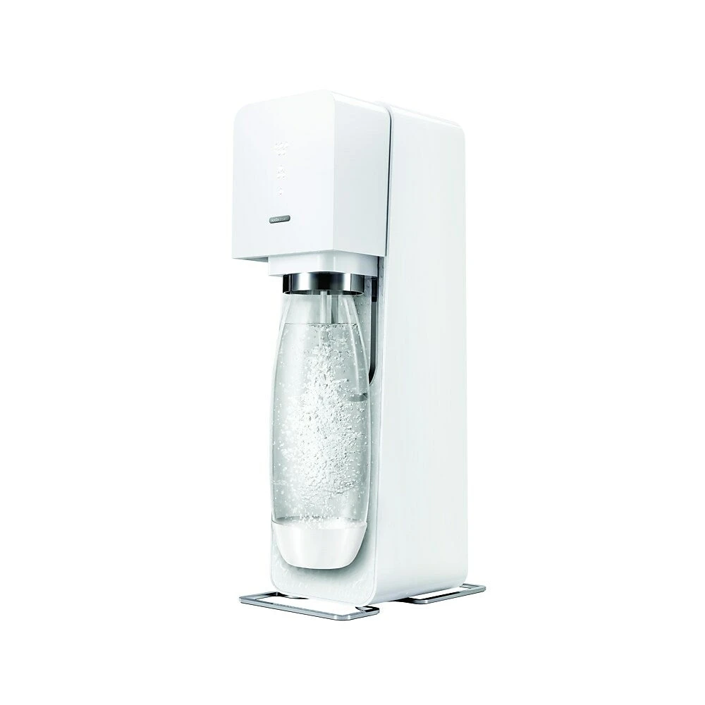 Save money and enjoy carbonated beverages at home with the SodaStream Source Starter Kit. This easy-to-use starter kit includes everything you need to start making your own carbonated water. You get the SodaStream machine, SodaStream bottle, and a 60L carbonator cartridge. The sleek and stylish design of this versatile white soda maker looks great in any contemporary home or office.
